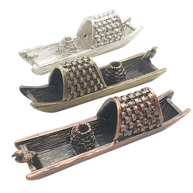 Barchetta Portaincenso in Metallo Argento 9.5 cm