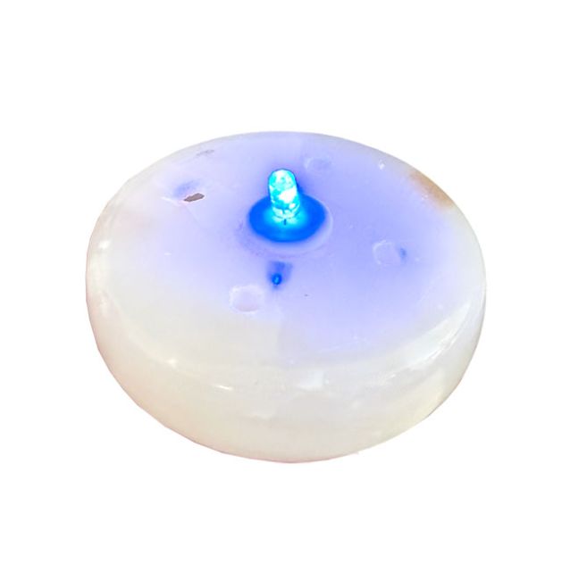 Base in onice chiaro che cambia colore grazie a un LED. Ideale per lampade di sale bianco o lampade di selenite. Si collega a una porta USB. Per lampade di sale e selenite.