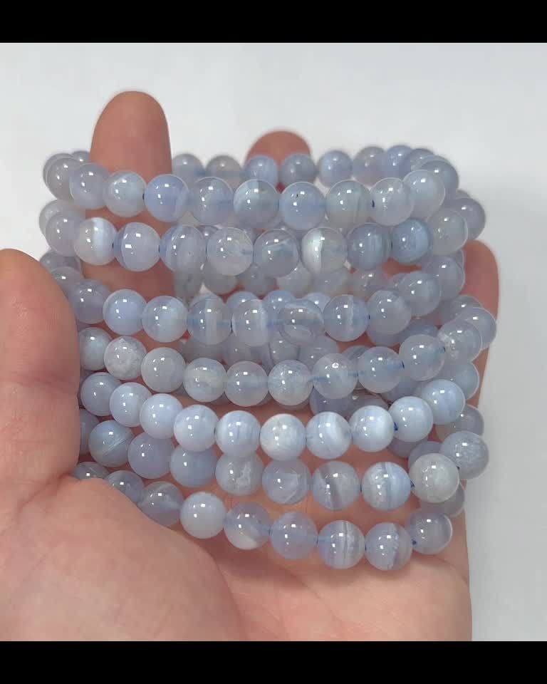 Bracciale Calcedonio Blu Perline AA Nastro 8mm