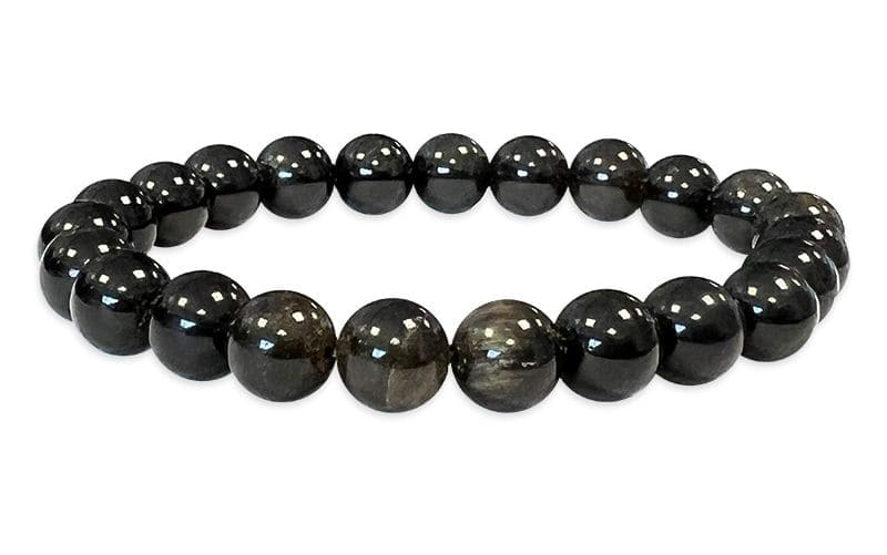 Bracciale perle di Ossidiana nera dorata A 8mm
