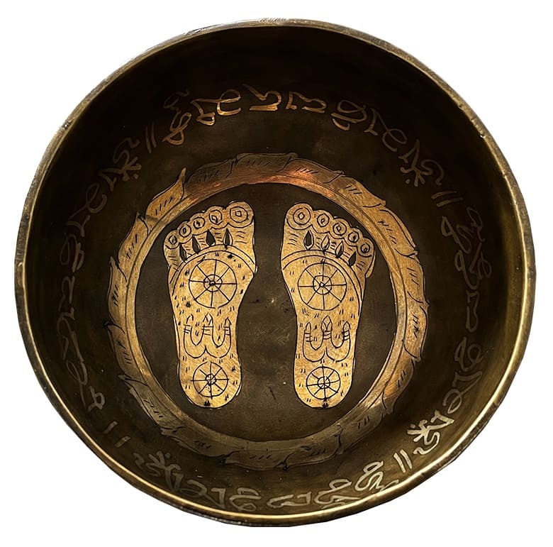 Campana Tibetana 7 metalli 14 cm - Incisioni Piedi - senza bastoncino di legno