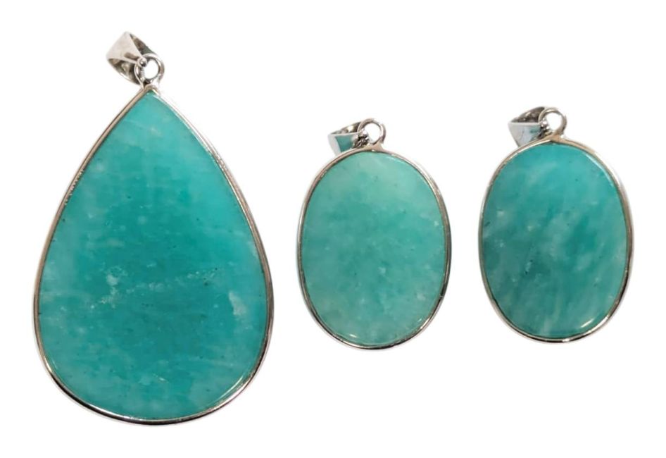 Ciondolo in argento 925 Amazzonite AA+ 3 pezzi 14,97 g