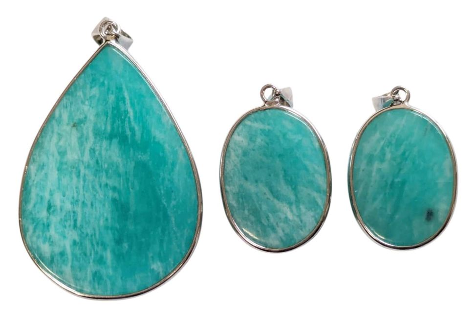 Ciondolo in argento 925 Amazzonite AA+ 3 pezzi 15,48 g