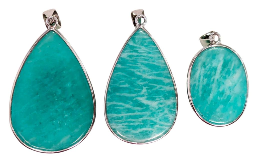 Ciondolo in argento sterling 925 con amazzonite AA+, 3 pezzi, 15,64 g