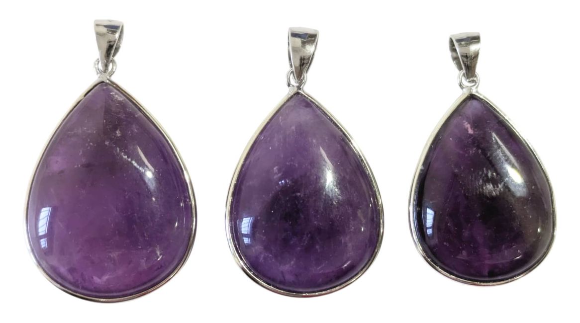 Ciondolo in argento sterling 925 con ametista AAA, 3 pezzi, 14,74 g