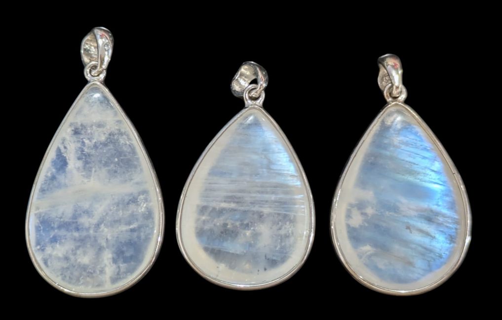 Ciondolo in argento sterling 925 con pietra di luna bianca AAA, 3 pezzi, 10,23 g