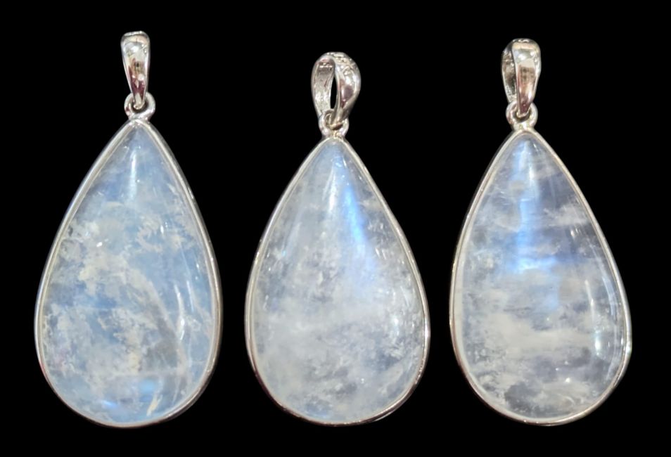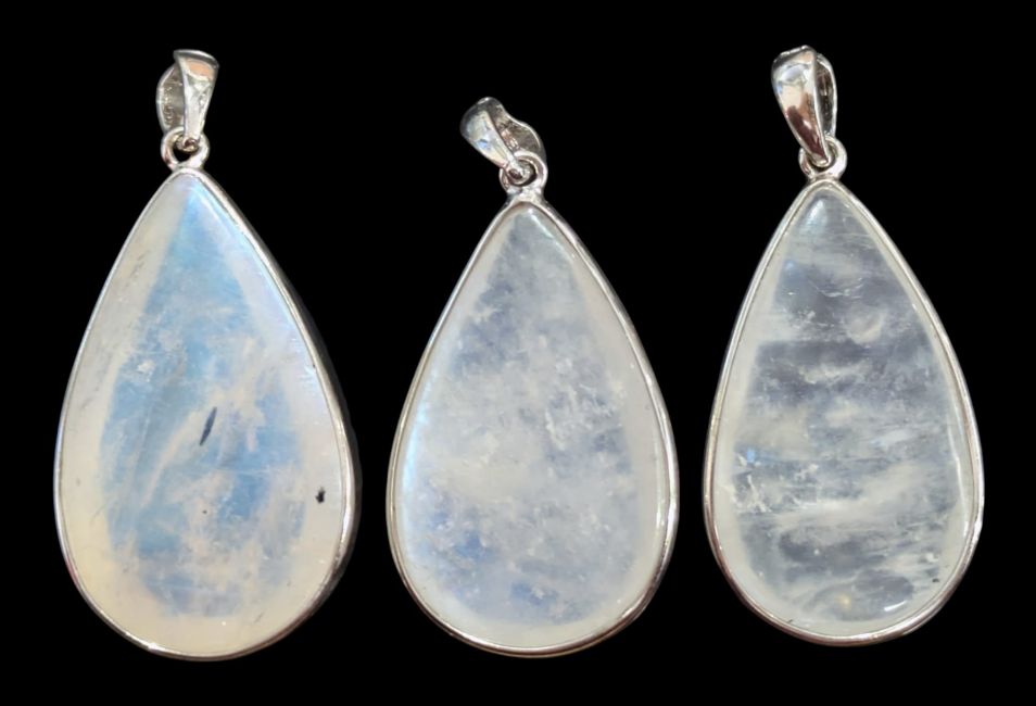 Ciondolo in argento sterling 925 con pietra di luna bianca AAA, 3 pezzi, 10,6 g