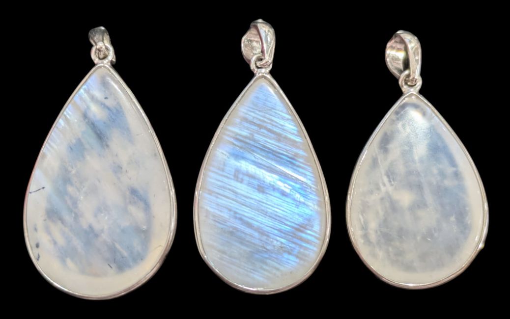Ciondolo in argento sterling 925 con pietra di luna bianca AAA, 3 pezzi, 10,63 g