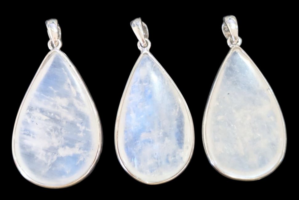 Ciondolo in argento sterling 925 con pietra di luna bianca AAA, 3 pezzi, 11,07 g