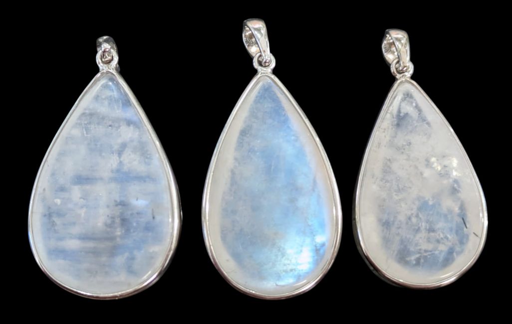 Ciondolo in argento sterling 925 con pietra di luna bianca AAA, 3 pezzi, 11,25 g