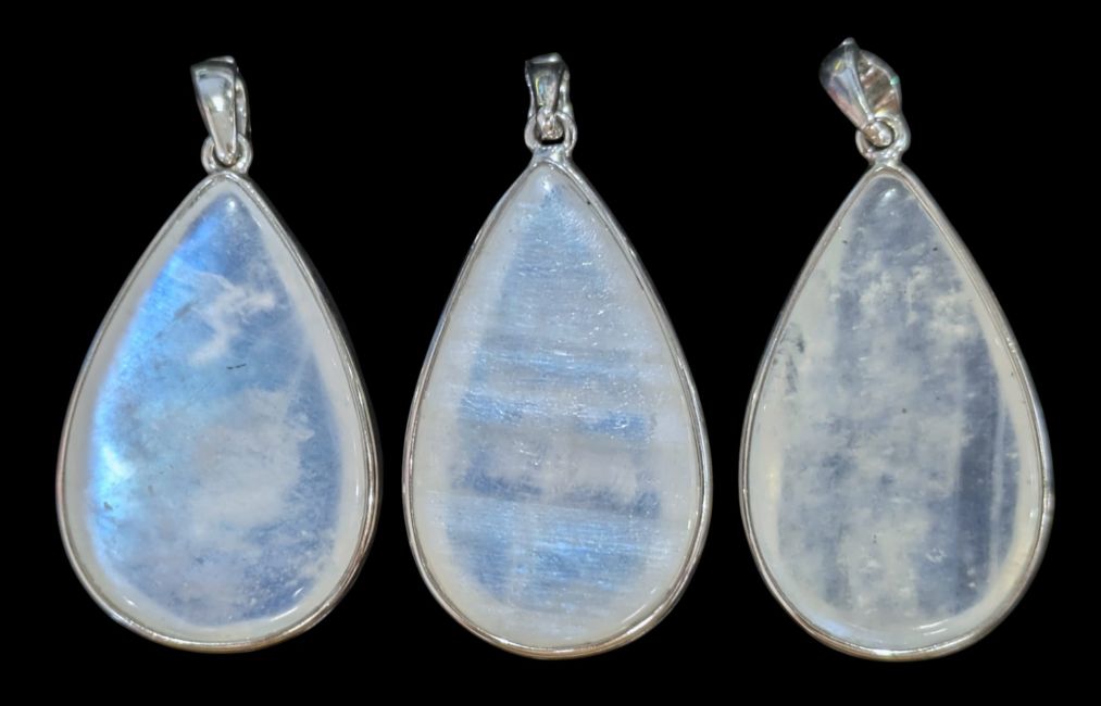 Ciondolo in argento sterling 925 con pietra di luna bianca AAA, 3 pezzi, 11,3 g