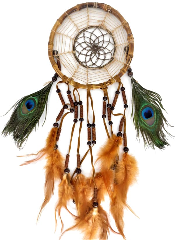 Dream catcher bamboo turchese e piume di pavone 17 cm