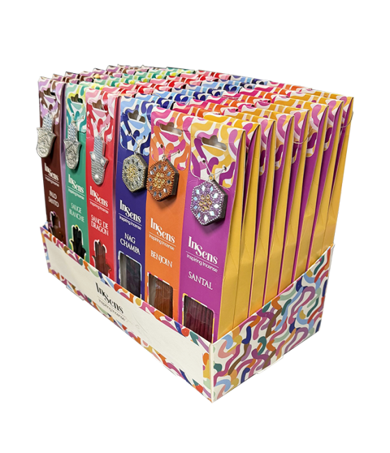 Espositore InSens con 48 confezioni di incenso (40 bastoncini ciascuna)