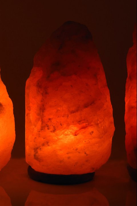 Lampada in sale naturale. Não possui base di Madeira; Una pedra repousa sobre molto pezzi di plastica.