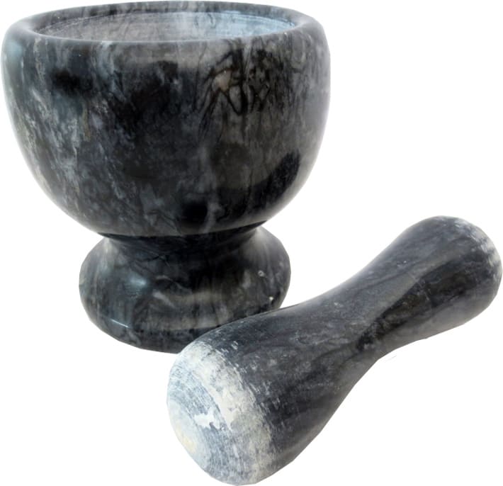 Uno strumento da cucina ideale per tritare finemente piccole quantità di spezie, erbe, aglio, ecc. Il ruvido muro interno facilita la macinatura di ingredienti duri come grani di pepe, cumino, ecc. Frantumando gli ingredienti, il gusto e l'aroma emergono al meglio.
