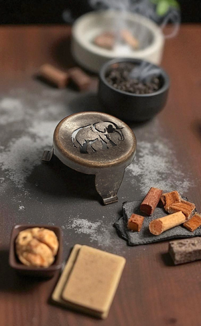 Questo supporto in metallo è appositamente progettato per contenere carbone ardente , utilizzato per rituali di incenso, fumigazione o aromaterapia. Il suo design traforato rappresenta un maestoso elefante, simbolo di saggezza e protezione.