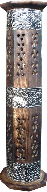 Porta incenso in legno a 3 strisce metalliche da 30 cm