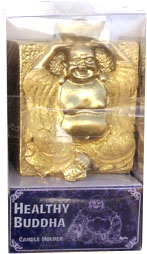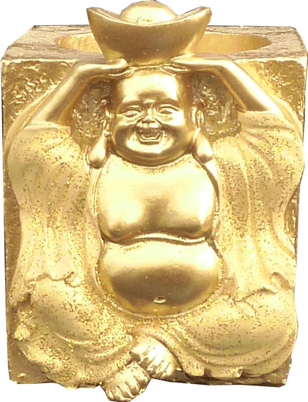 Portacandele in resina buddha salute oro 7cm