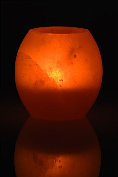 Portacandele rotondo in cristallo di sale naturale da 1 kg
