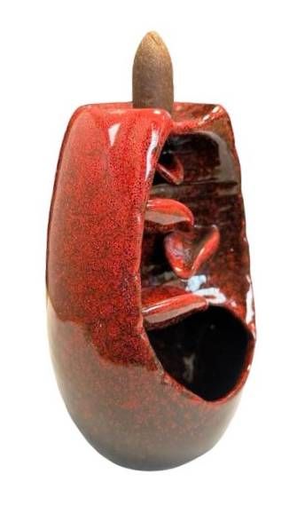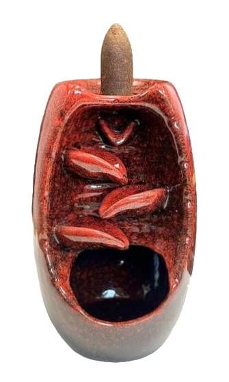 Portaincenso a riflusso in ceramica rossa Cascata di foglie 13 cm