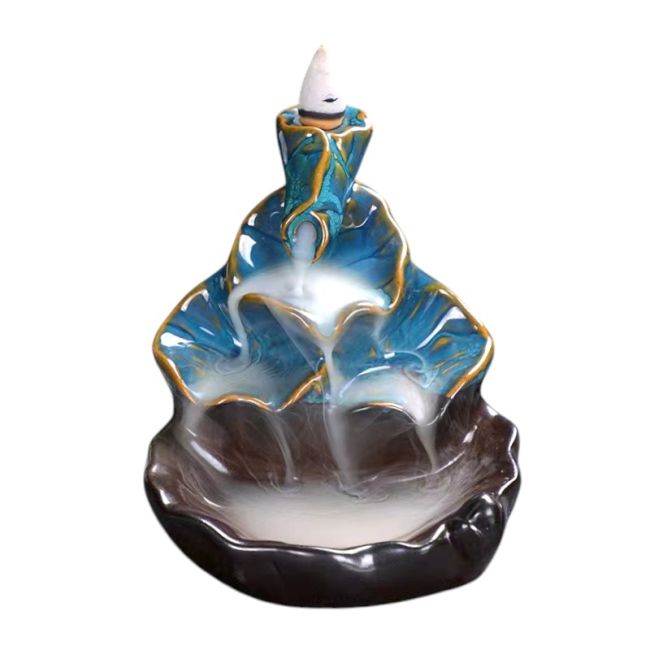 Portaincenso in ceramica con riflusso cascata foglie di loto blu 10 cm