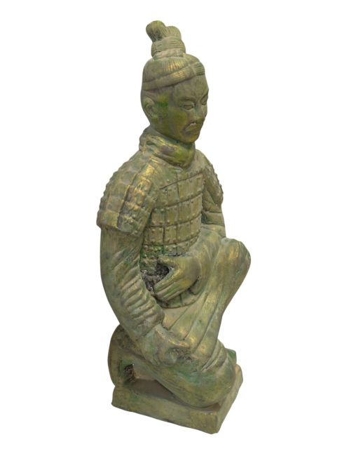 Statua antica colorata di arciere inginocchiato in terracotta 26 cm