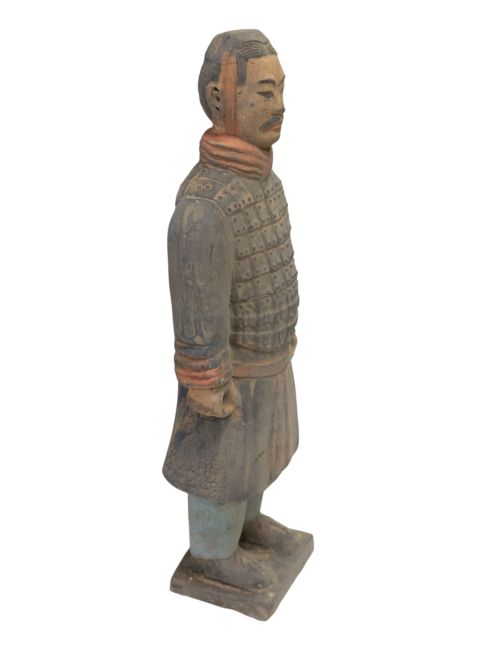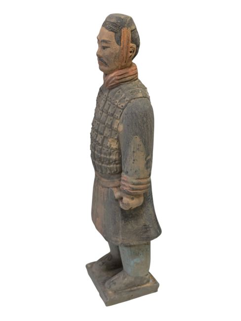 Le statue in terracotta di guerrieri e cavalli, estremamente realistiche, riproducono fedelmente il loro aspetto al momento del ritrovamento. Il processo di invecchiamento è molto più complesso rispetto a quello delle statue ordinarie e richiede un lavoro meticoloso e una notevole quantità di tempo. Per ottenere un aspetto autentico, devono essere sepolte nel terreno per un certo periodo di tempo, quindi dissotterrate, esposte agli agenti atmosferici e restaurate. Solo dopo questo naturale processo di erosione è possibile ottenere un effetto realistico. Di conseguenza, il loro valore è considerevolmente elevato grazie alla complessità e all'autenticità del processo di fabbricazione.