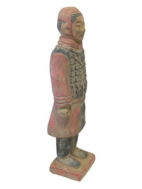 Le statue in terracotta di guerrieri e cavalli, estremamente realistiche, riproducono fedelmente il loro aspetto al momento del ritrovamento. Il processo di invecchiamento è molto più complesso rispetto a quello delle statue ordinarie e richiede un lavoro meticoloso e una notevole quantità di tempo. Per ottenere un aspetto autentico, devono essere sepolte nel terreno per un certo periodo di tempo, quindi dissotterrate, esposte agli agenti atmosferici e restaurate. Solo dopo questo naturale processo di erosione è possibile ottenere un effetto realistico. Di conseguenza, il loro valore è considerevolmente elevato grazie alla complessità e all'autenticità del processo di fabbricazione.