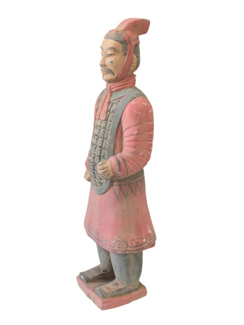 Guerrieri in armatura: queste statue raffigurano soldati con indosso armature protettive, a simboleggiare il loro status di élite nell'esercito di Qin Shi Huangdi. Sono spesso equipaggiati con armi sofisticate e protetti da robuste armature, a simboleggiare il loro ruolo cruciale nella difesa dell'impero.