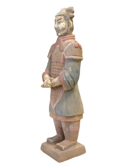 Le statue in terracotta di guerrieri e cavalli, estremamente realistiche, riproducono fedelmente il loro aspetto al momento del ritrovamento. Il processo di invecchiamento è molto più complesso rispetto a quello delle statue ordinarie e richiede un lavoro meticoloso e una notevole quantità di tempo. Per ottenere un aspetto autentico, devono essere sepolte nel terreno per un certo periodo di tempo, quindi dissotterrate, esposte agli agenti atmosferici e restaurate. Solo dopo questo naturale processo di erosione è possibile ottenere un effetto realistico. Di conseguenza, il loro valore è considerevolmente elevato grazie alla complessità e all'autenticità del processo di fabbricazione.