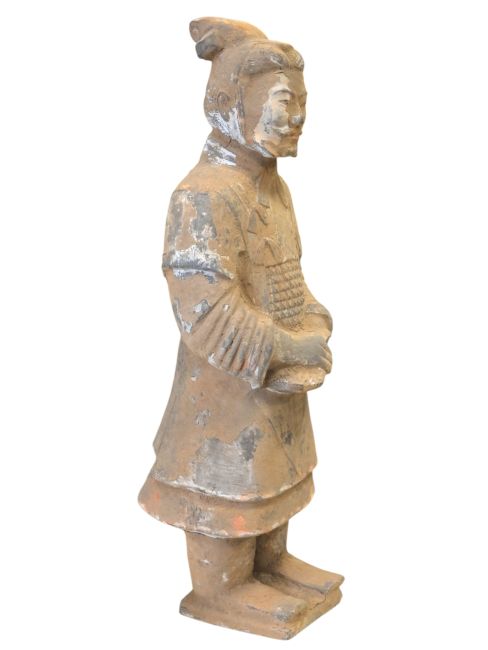 Le statue in terracotta di guerrieri e cavalli, estremamente realistiche, riproducono fedelmente il loro aspetto al momento del ritrovamento. Il processo di invecchiamento è molto più complesso rispetto a quello delle statue ordinarie e richiede un lavoro meticoloso e una notevole quantità di tempo. Per ottenere un aspetto autentico, devono essere sepolte nel terreno per un certo periodo di tempo, quindi dissotterrate, esposte agli agenti atmosferici e restaurate. Solo dopo questo naturale processo di erosione è possibile ottenere un effetto realistico. Di conseguenza, il loro valore è considerevolmente elevato grazie alla complessità e all'autenticità del processo di fabbricazione.